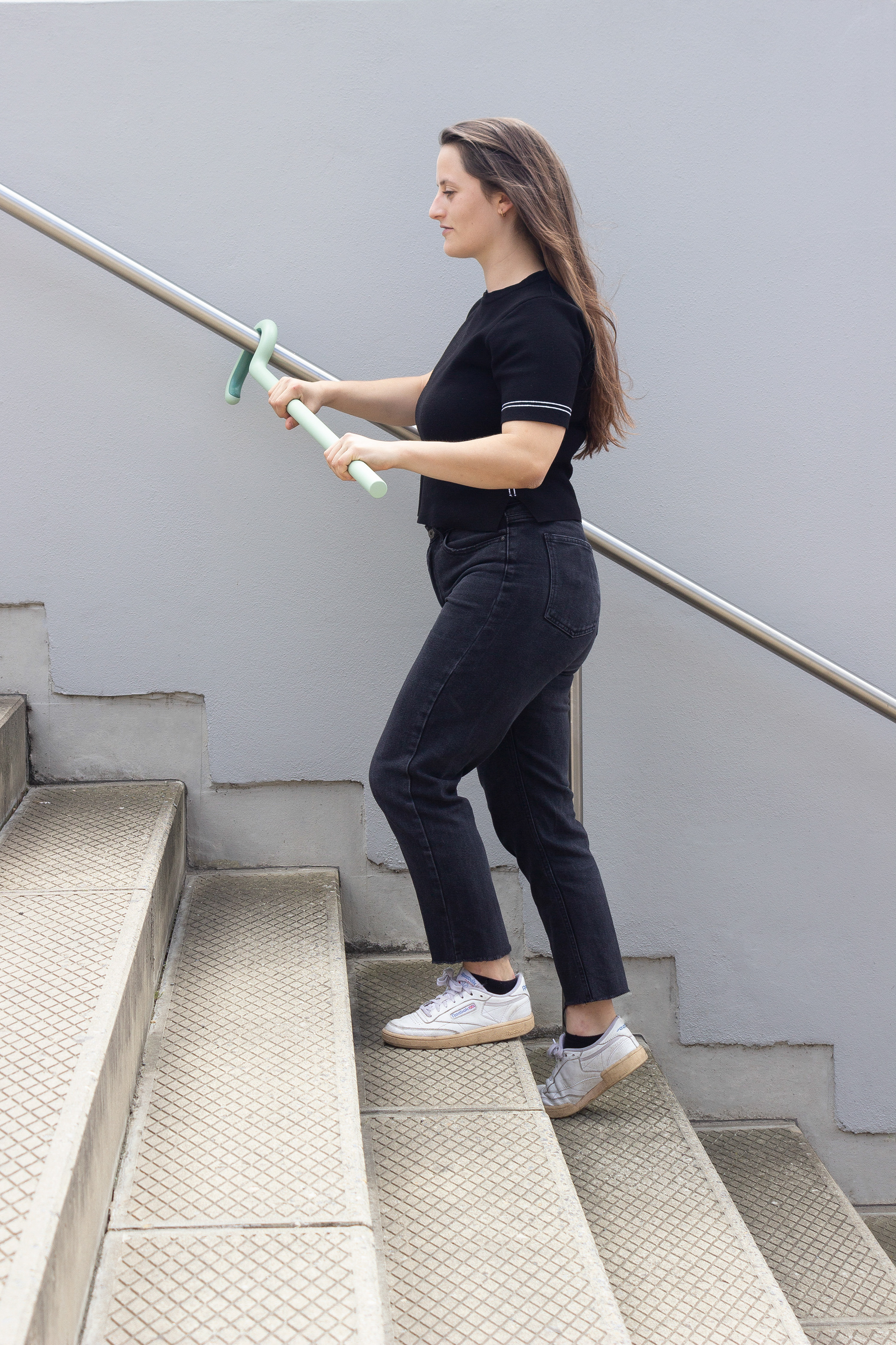 Dreibein ist ein universeller Gehstock, der Alltagssituationen erleichtert, zu mehr Mobilität verhilft und gleichzeitig die Akzeptanz von Gehhilfen steigert.